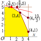 そのうちで,点A(1, 1)を通るとき,最小値4x+y=5をとり,点B(3, 1)を通るとき,最大値4x+y=13をとる. (3)