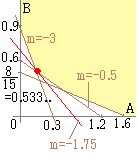 A+2B≧1.2→傾き−0.5 5A+15B≧8 0≦A, B