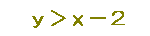 (1)まず, \( y=x-2 \)の直線を考えます →y切片が−2で,傾きが1の直線 (2)次に,その直線の「上側」の領域を答にします