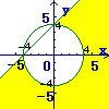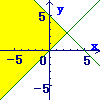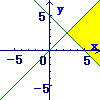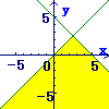 下図の黄色の部分.ただし境界線はすべて含むものとする.