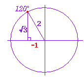例えば,sin 120°= cos 120°= − tan 120°= − ※ 180°,0°のライン(赤道線)から30°,45°,60°などの図を書いて考えるとよい. |