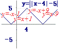 ■2 関数f(x)=||x-4|-5|に対し答えよ. (1) y=f(x)のグラフをかけ. (2) t>0に対して,区間−t≦x≦2tにおける関数f(x)の最大値をg(t)とする.このとき関数g(t)を求め,そのグラフをかけ. 「2000年鳴門教育大入試問題」の引用