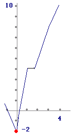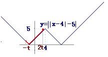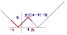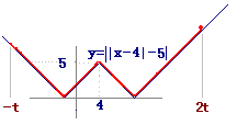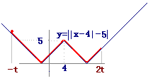 t≧6かつf(2t)<f(-t)のときは右の図のようになる. f(2t)<f(-t)←→2t-9<-(-t)-1←→t<8 つまり6≦t<8のとき,最大値は g(t)=f(-t)=