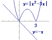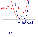 ■3・・・(2次関数,2次不等式を習っていたらこの問題もしましょう) 関数 f(x)=|x2−3x|−xを考える. (1) 実数の定数kに対して,y=f(x)のグラフと直線y=kとの共有点の個数を調べよ. (2) 方程式 f(x)=2|x−1|の解は4個ある.それらの解x1,x2,x3,x4(x1<x2<x3<x4)を求めよ. (1999年度近畿大学入試問題の引用)