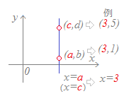 右図のように,a=cのときは縦に並んでいることになり,x=a と言っても x=c といっても,「どちらでもよい」ことになります. 【例】