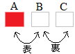 n (n=2, 3, 4, 5)回目にX (X=A, B, C)が赤い箱を持っている確率をP(n, X)で表すと(1) @)2回目にAが赤い箱を持っているのは 「裏→裏と出る場合」「表→表と出る場合」があるから A)2回目にBが赤い箱を持っているのは 「裏→表と出る場合」だけだから B)2回目にCが赤い箱を持っているのは 「表→裏と出る場合」だけだから (2) @)3回目にAが赤い箱を持っているのは