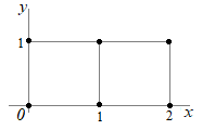 【類題2.4】xy平面上の6個の点(0, 0), (0, 1), (1, 0), (1, 1), (2, 0), (2, 1)が図のように長さ1の線分で結ばれている.動点Xは,これらの点の上を次の規則に従って1秒ごとに移動する. 規則: