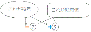 −7の絶対値は7です。 +5の絶対値は5です。 −1.4の絶対値は1.4です。