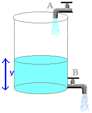 右図のような水槽でAの栓を開くと毎分5(cm)水位が高くなる.またBの栓を開くと毎分10(cm)水位が低くなる.初め水位が50(cm)あったとき,Bの栓を開いてx分経過したときの水位をy(cm)とする.