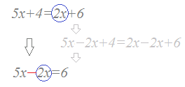 5x−2=3x+4のような方程式を変形するときは、