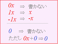 [A] xの係数が0のときはxの項を書きません.数の項が0のときも何も書きません.