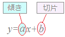 直線の方程式を![]() の形で書いたとき (1)定数項bは「切片」と呼ばれます.