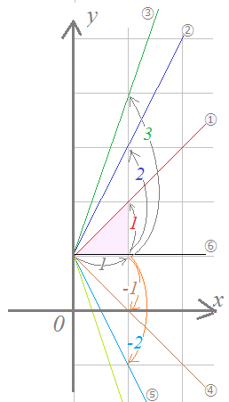 •傾きaは,xの正の向きに1目盛り進んだときにyの向きに幾ら進むかを「符号付きの数字で」表したものです.