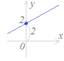 ![]() 【例4】右の直線の傾きは1です. 直線の方程式はy=1x+b=x+bの形になります. 切片b=2も読み取ると,結局,直線の方程式はy=x+2であることが分かります.