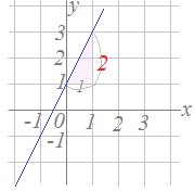 【例5】右の直線の傾きは2です(a=2). 直線の方程式はy=2x+bの形になります. 切片b=1も読み取ると,結局,直線の方程式はy=2x+1であることが分かります.