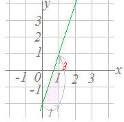 【例6】右の直線の傾きは3です.(a=3) 直線の方程式はy=3x+bの形になります. 切片b=−2も読み取ると,結局,直線の方程式はy=3x−2であることが分かります. |
