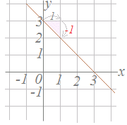 【例7】右の直線の傾きは−1です.(a=−1) 直線の方程式はy=−1x+b=−x+bの形になります. 切片3も読み取ると,結局,直線の方程式はy=−x+3であることが分かります.