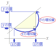 になります.(※yが減少するときの増加量はマイナスで表わします.)