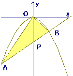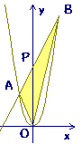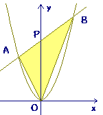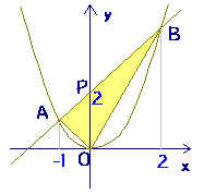 x2=x+2を解いて (→ x2−x−2=0 → (x+1)(x−2)=0 ) x=−1,2 直線ABがy軸と交わる点Pのy座標は y=x+2 から y=2