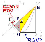 ここで,△OPBの面積は,底辺の長さ2,高さ2と考えると
