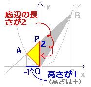 S1=2×2÷2=2です. また,△OPAの面積は,底辺の長さ2,高さ1(高さは+にします)と考えると