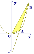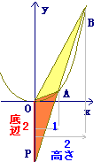 ここで,△OPBの面積は,底辺の長さ(=OP)2,高さ2と考えると