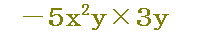 \( \displaystyle -5x^2y\times 3y=(-5)\times 3x^2y^{1+ 1}=-15x^2y^2 \)