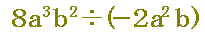 \( \displaystyle 8a^3b^2\div (-2a^2 b)\frac{8a^3b^2}{-2a^2 b} \)