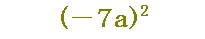 \( \displaystyle (-7a)^2=(-7)^2a^2=49a^2 \)