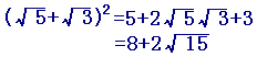 \( \displaystyle (\sqrt{5} - \sqrt{3})^2=(\sqrt{5})^2 -2\sqrt{5}\sqrt{3}+ (\sqrt{3})^2 \)