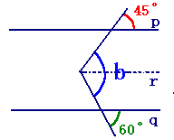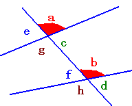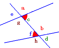 | 右図(2)の図形において角aの同位角はどれですか.赤丸印の部分をクリックしなさい.