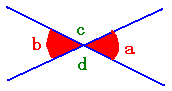 右図(1)のように∠aと∠bが対頂角のとき ∠a+∠c=180゜ ∠b+∠c=180゜ だから,∠a=∠bとなります.