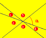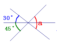 【問題】 右図(1)の図形において角aの対頂角はどれですか.赤丸印の部分をクリックしなさい.