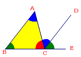 右図の三角形ABCの内角の和が180゚になることを示すことにします.