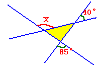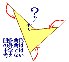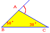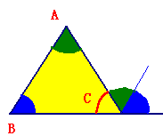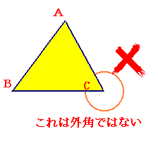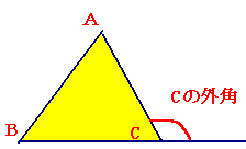<性質> 三角形の1つの角の外角は残り2つの内角の和に等しい. 例 =∠A+∠B |