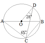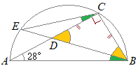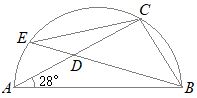 (7)右の図は,線分ABを直径とする半円で,点Cは, ∠BAD=28°であるとき,∠DCEの大きさを求めなさい。 (熊本県2017年入試問題)