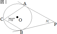 (1)右の図Tにおいて,∠xの大きさを求めなさい。ただし,PA, PBは円Oの接線で,点A, Bはその接点である。また,点Cは円Oの周上の点である。 (鳥取県2017年入試問題)