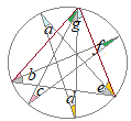 右の図で,∠a+∠b+∠c+∠d+∠e+∠f+∠gの大きさを求めなさい。 ![]() (山梨県2015年入試問題)