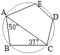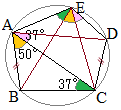 (3)右の図のように,円に内接する五角形ABCDEがある。∠BAC=50°, ∠ACB=37°, AB=CDのとき,∠AEDの大きさを求めなさい。 (新潟県2000年入試問題)