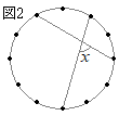(4)図2で,円周上の12点は円周を12等分している。∠xの大きさを求めよ。 (奈良県2000年入試問題)