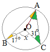 【例題1】右の図のように,円Oの周上に点A, B, Cがある。 このとき,∠xの大きさを求めなさい。 (富山県2015年入試問題)
