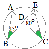 (解答)∠ABEと∠ACEは,一つの弧 次に,三角形の内角の和は180°だから 80°+35°+∠DEC=180° ∠DEC=65°…(答)
