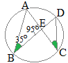 (1)右の図のように,円周上に4点A, B, C, Dがあり,線分ACと線分BDの交点をEとします。∠ACD=35°, ∠AEB=95°のとき,∠BACの大きさは何度ですか。 (広島県2017年入試問題)