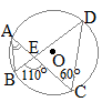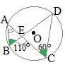 (2)右の図において,4点A, B, C, Dは円Oの周上にあり,線分AC, BDの交点をEとする。∠BEC=110°, ∠ACD=60°のとき,∠BACの大きさを求めなさい。 (山梨県2017年入試問題)