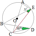 次に,∠CEAは,直径に対する円周角だから90°∠x+36°=90° ∠x=54°…(答)