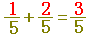 \( \displaystyle \frac{2}{7}+ \frac{3}{7}=\frac{2+ 3}{7}=\frac{5}{7} \)