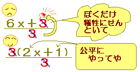 \( \displaystyle \frac{6x + 2}{3}=\frac{2(3x + 1)}{3} \)は約分できない