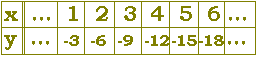 ![]() 1つ組だけでなく,表の全部のx,yの組に合うものを探さなければなりません. (※この関係は比例の関係y=axで,比例定数はa=−3になっています) →閉じる←