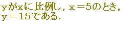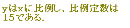 ![]() yがxに比例するのだからy=axとおけます. このaを比例定数というのでa=15のときは y=15x →閉じる←