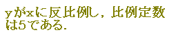 ![]() yがxに反比例するのだから このaを反比例の比例定数というのでa=5のときは